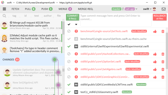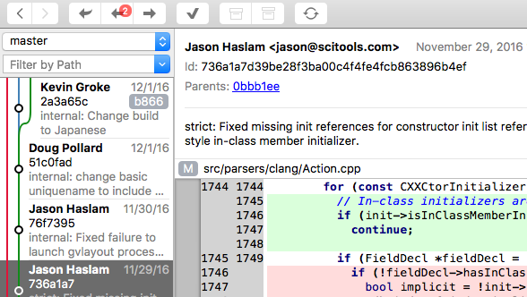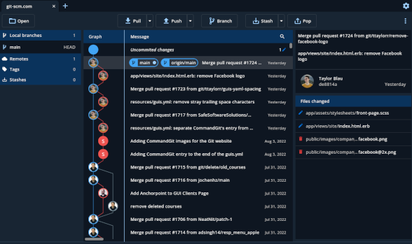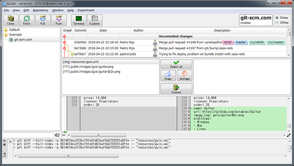 Git comes with built-in GUI tools for committing (git-gui) and browsing (gitk), but there are several third-party tools for users looking for platform-specific experience.